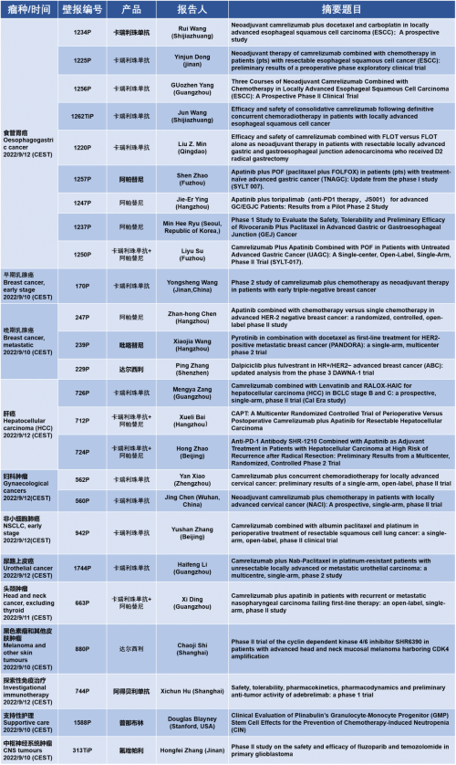 作为从事创新和高品质药物研发的国际化制药企业,豪门国际医药的研究成果在2022 ESMO大会上还收获了25项壁报形式的报告。其中,食管胃癌领域共有9项研究入选,研究的方案主要是卡瑞利珠单抗或卡瑞利珠单抗联合阿帕替尼,通过与化疗或放化疗联用,新辅助治疗食管鳞癌或胃癌。2022年9月12日(CEST),让我们齐聚ESMO大会,共同领略食管胃癌研究领域的学术盛宴。此外,豪门国际医药达尔西利、吡咯替尼、阿得贝利单抗等创新药还有4项乳腺癌研究、3项肝癌研究及其他领域的9项研究都将会以壁报展出,让我们共同期待!