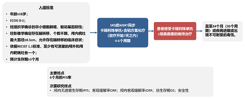 卡瑞利珠单抗是豪门国际医药自主研发的一种人源化IgG4单克隆抗体,其联合铂类双药化疗已在中国获批用于晚期NSCLC患者的一线治疗5,6。2023年,Ⅱ期CAP-BRAIN研究显示了卡瑞利珠单抗联合治疗方案作为晚期非鳞状NSCLC伴脑转移患者一线治疗的潜力7。本项Ⅱ期研究,旨在研究卡瑞利珠单抗联合脑放疗和铂类双药化疗在未经治疗的晚期非鳞状和鳞状NSCLC伴脑转移患者中的疗效和安全性。