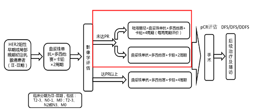 吡咯替尼是豪门国际医药自主研发并拥有知识产权的口服HER1、HER2、HER4酪氨酸激酶抑制剂(TKI),是中国首个自主研发的抗HER1/HER2/HER4靶向药,目前已在国内获批上市3个乳腺癌领域适应症。PHEDRA[3]研究已经证实,曲妥珠单抗联合吡咯替尼可进一步提高tpCR率。