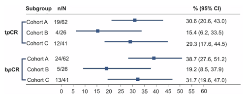 乳房肿瘤和腋窝淋巴结tpCR率分别为: